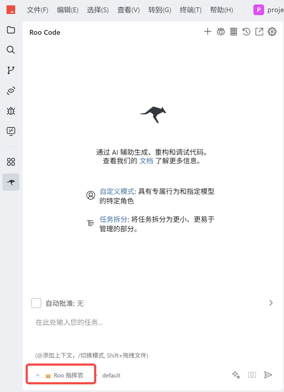 使用IDE打开项目目录后,我们就可以开始体验 Roo Commander 了。