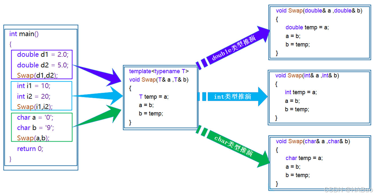 1️⃣隐式实例化:让编译器根据实参推演模板参数的实际类型