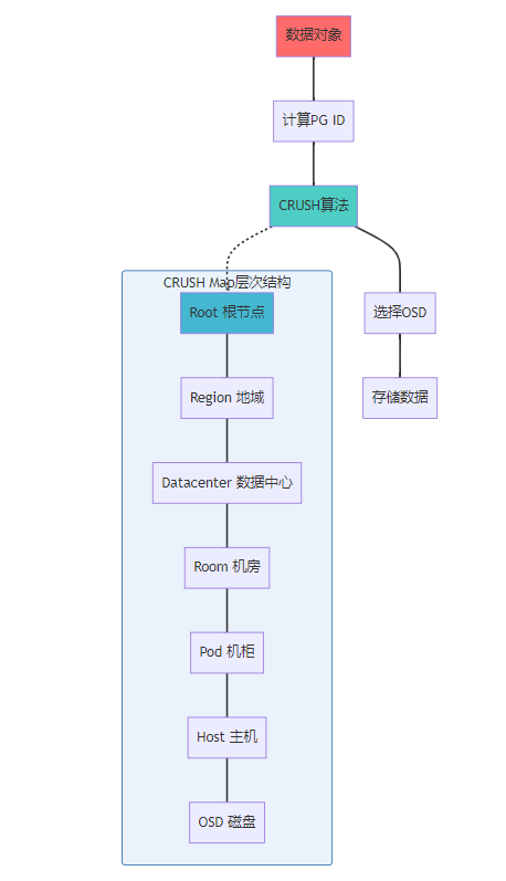 CRUSH(Controlled Replication Under Scalable Hashing)算法是Ceph的核心技术之一,它解决了一个关键问题:在众多存储节点中,如何决定数据应该存放在哪里?