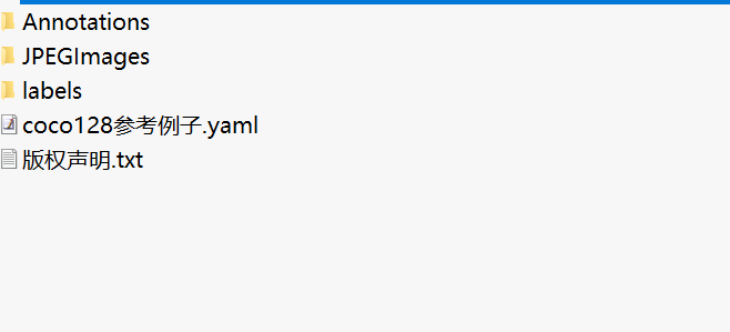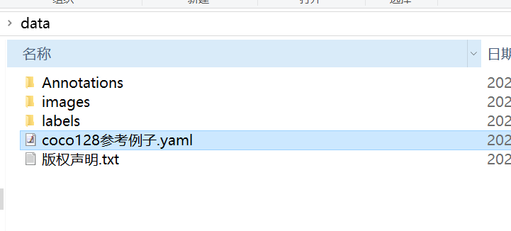 参考coco128.yaml配置写自己训练配置文件,如果没有yaml文件可以按照下面格式书写配置文件