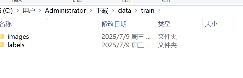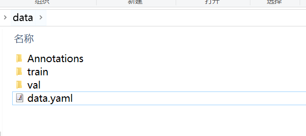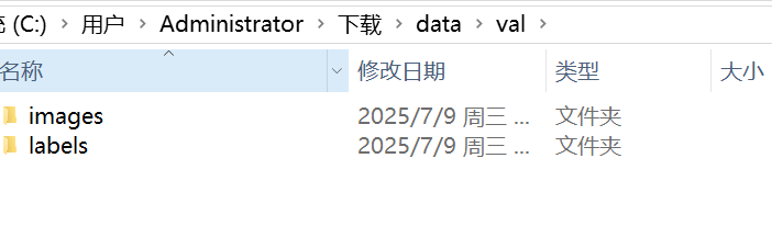 在data文件夹下面新建train和val一共2个文件夹,然后分别在train和val文件夹再新建images和labels文件夹,如下图
