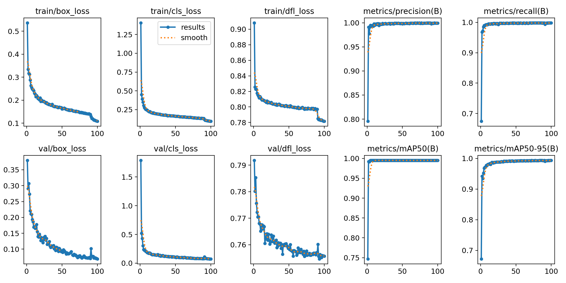 yolo task=detect mode=val model=runs/detect/train/weights/best.pt data=data.yaml输出指标图像,一般在模型训练后生成,文件位置在runs/detect/train/results.png: