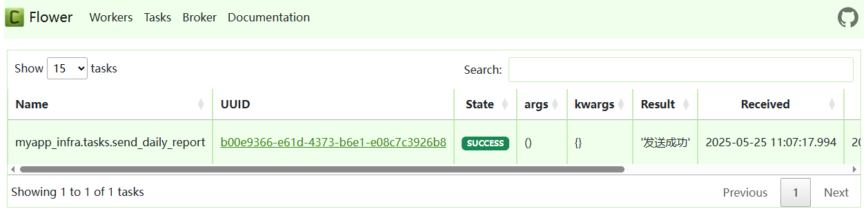 celery -A mysite flower --port=5555访问 http://<IP>:5555 查看Celery 图形监控