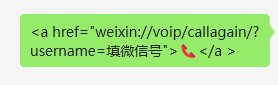 <a href="weixin://voip/callagain/?username=填微信号">电话</a>