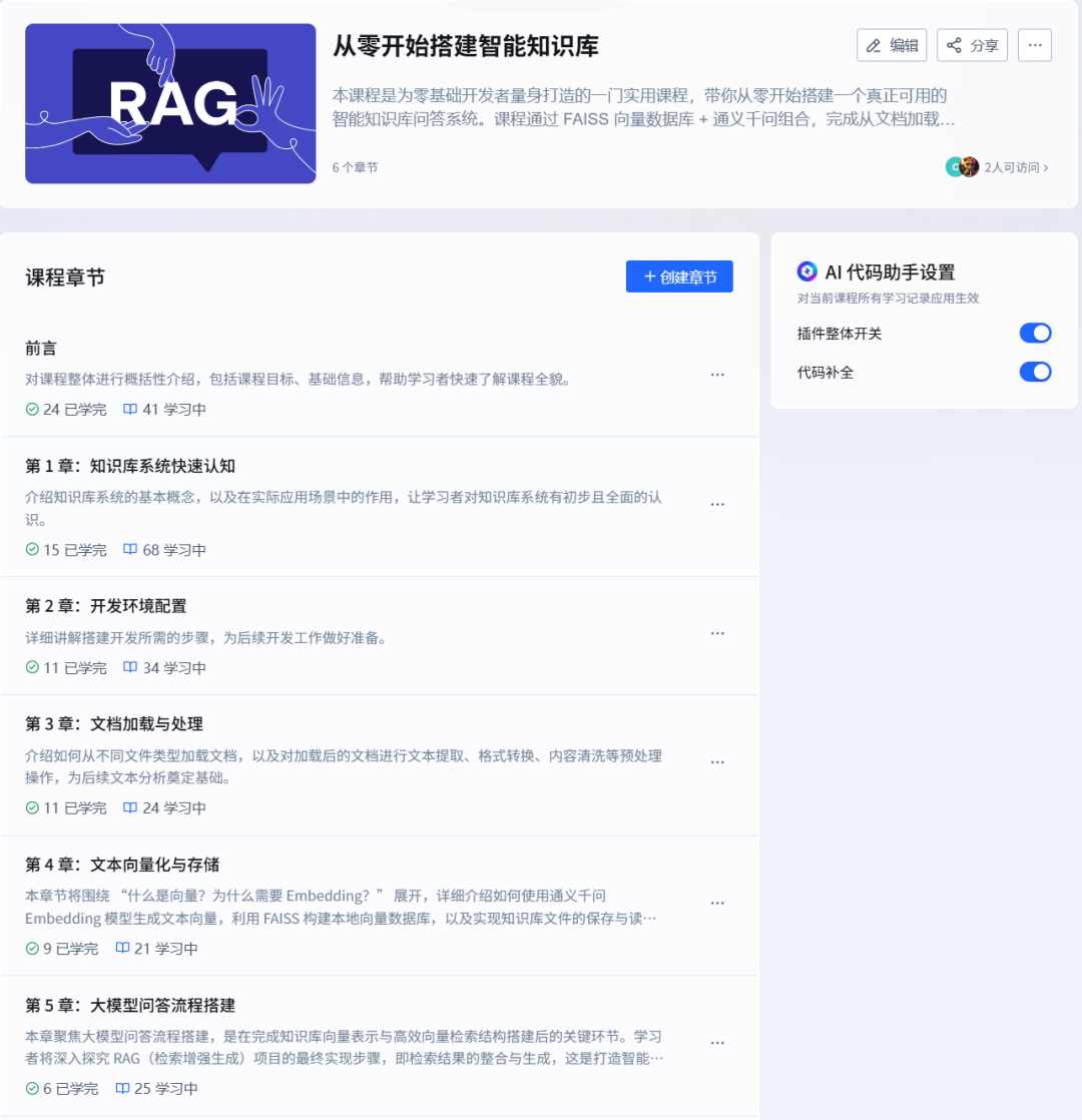 ✅ 零基础实战:从文档加载→文本向量化→RAG问答全流程,手把手教你开发企业级智能知识库,学完即可复用真实场景 ✅ 前沿技术栈:深度掌握FAISS向量数据库、通义千问大模型Embedding、检索增强生成(RAG)核心逻辑,紧跟AI开发趋势