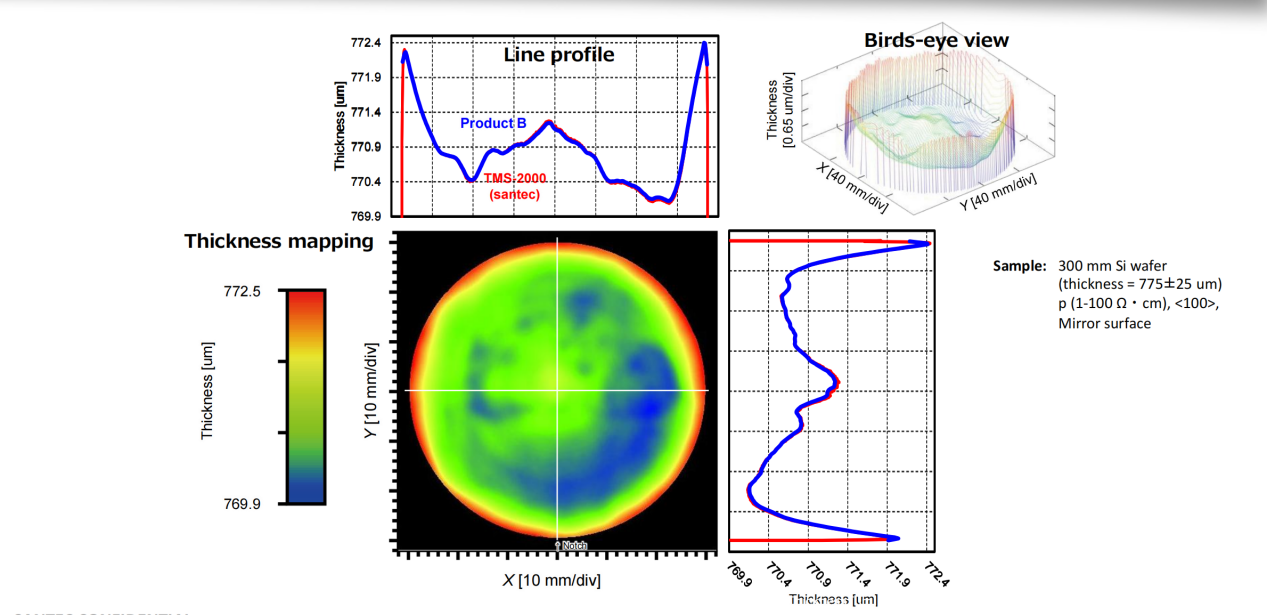 该系统基于第三代可调谐扫频激光技术,相较传统双探头对射扫描,可一次完成所有平面度及厚度参数测量。其创新扫描原理极大提升材料兼容性,从轻掺到重掺P型硅,到碳化硅、蓝宝石、玻璃等多种晶圆材料均适用: