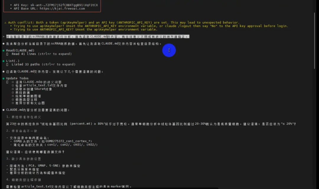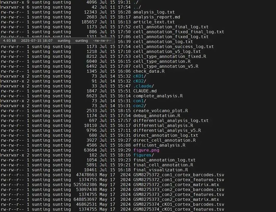 仅凭指令,AI就能自己找软件,找文件,生成分析脚本并且自行纠错,完成单细胞分析。