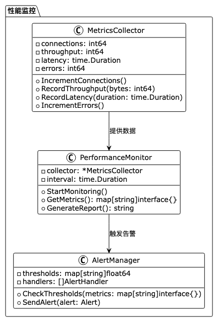 系统实现了全面的性能监控,包括连接数、吞吐量、延迟等关键指标。
