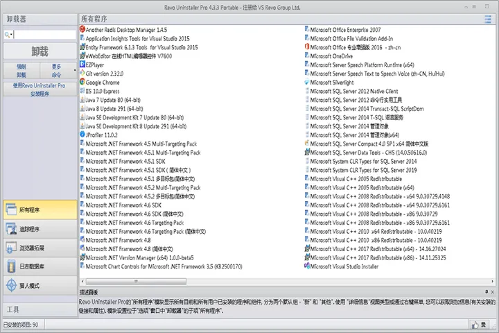 它允许您显示隐藏的安装程序,按名称过滤已安装程序的列表,强行卸载程序,浏览注册表项目,保存安装程序列表,快速小巧,操作简便。