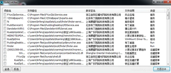 未知流氓软件只要有广告弹窗,用软件目录的adwview定位弹窗,之后点右下角的softcnkiller按钮可以扫描弹窗关联项。