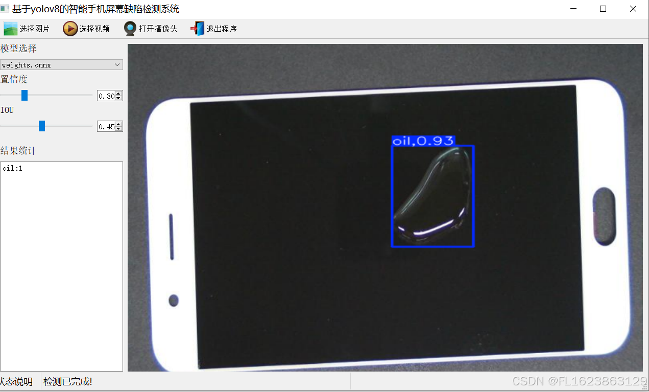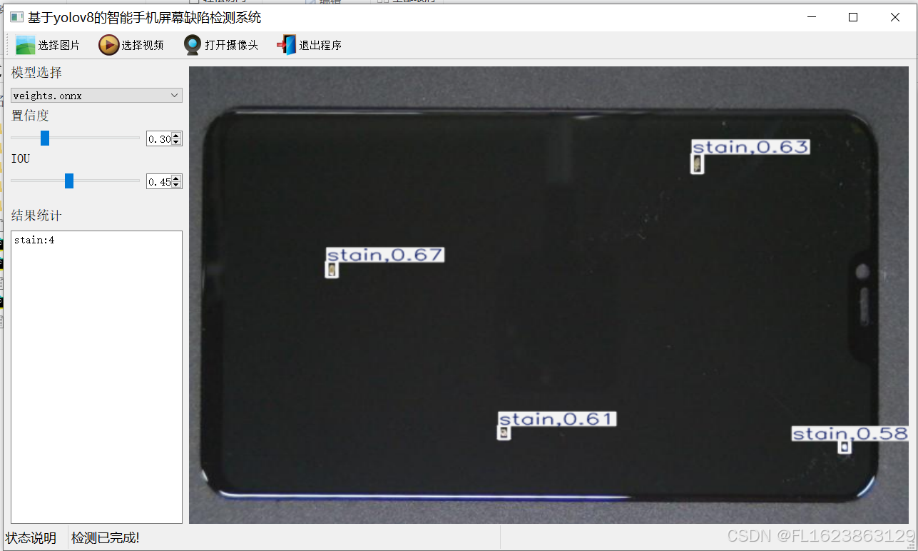 该系统利用YOLOv8算法的强大性能,结合定制化的数据集进行训练。数据集包含大量智能手机屏幕图像,每幅图像都经过精确标注,明确标记出oil、scratch和stain三类缺陷的位置和类别。通过深度学习技术,系统能够学习到这些缺陷的特征,从而在检测过程中快速、准确地识别出它们。