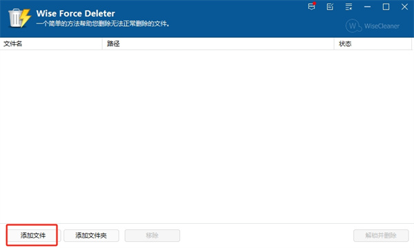 1: 下载安装 Wise Force Deleter 后,用户就可以看到其简洁,易于操作的界面。