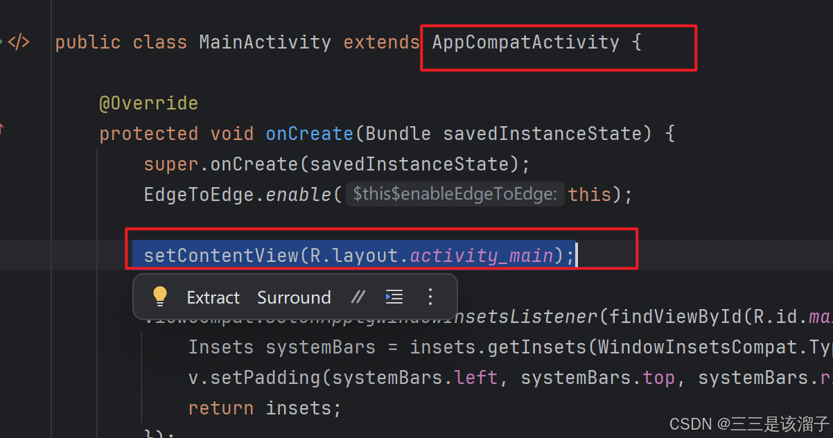 布局和Java代码做关联,页面启动的时候就会运行onCreate方法(暂时这么理解)