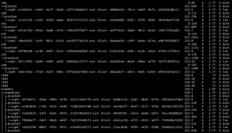 cat osd.txt | ./prepare-osd.sh 生成osd 如ceph-volume lvm prepare --data /dev/bcache0 --journal /dev/nvme0n1