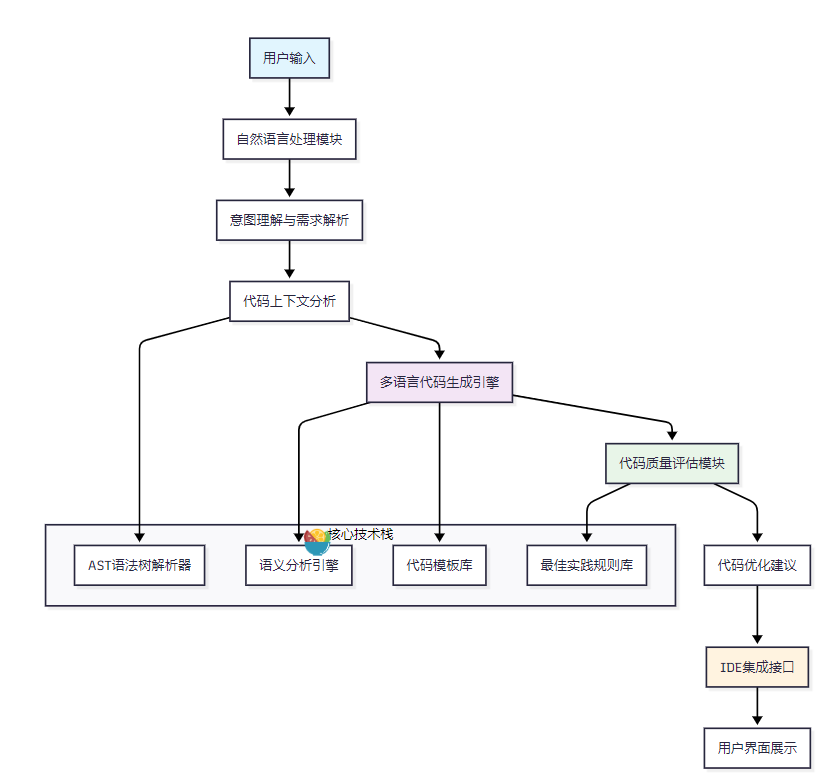多语言生成引擎(Multi-language Generation Engine):支持主流编程语言的代码生成。