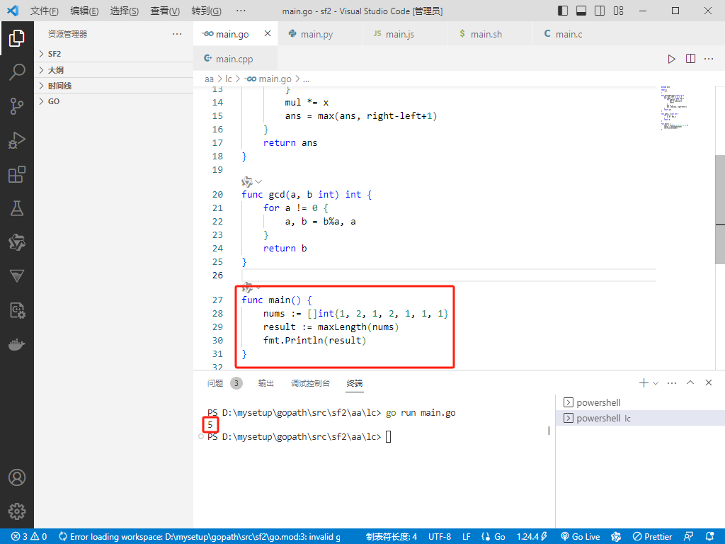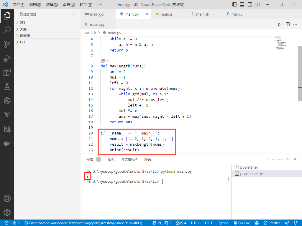 2025-07-18:最长乘积等价子数组。用go语言,给定一个只包含正整数的数组 nums。 定义:如果一个数组 arr 满足所有元素的乘积等于该数组最大公约数(GCD)与最小公倍数(LCM)的乘积,即