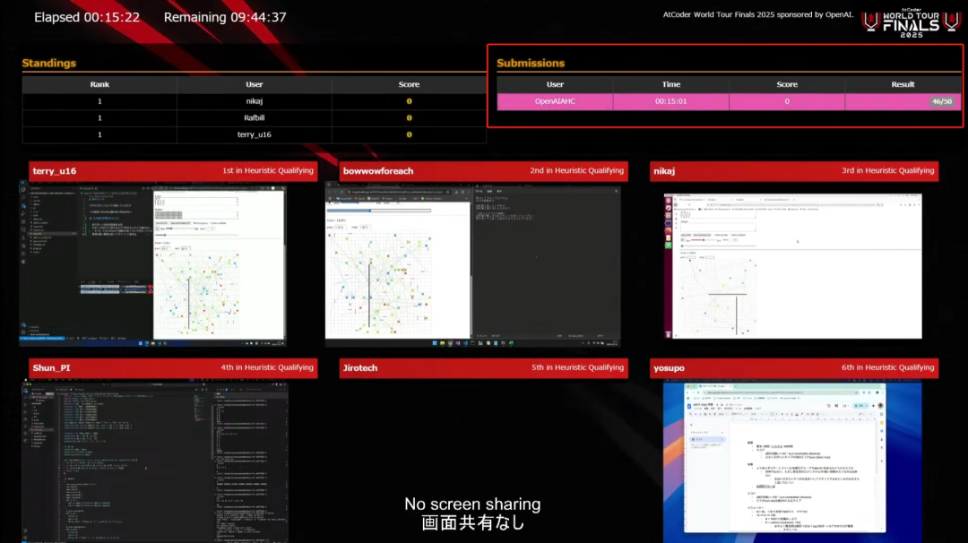 而这一次的提交,直到比赛结束,OpenAI都没有再能撼动Psyho的分数了。