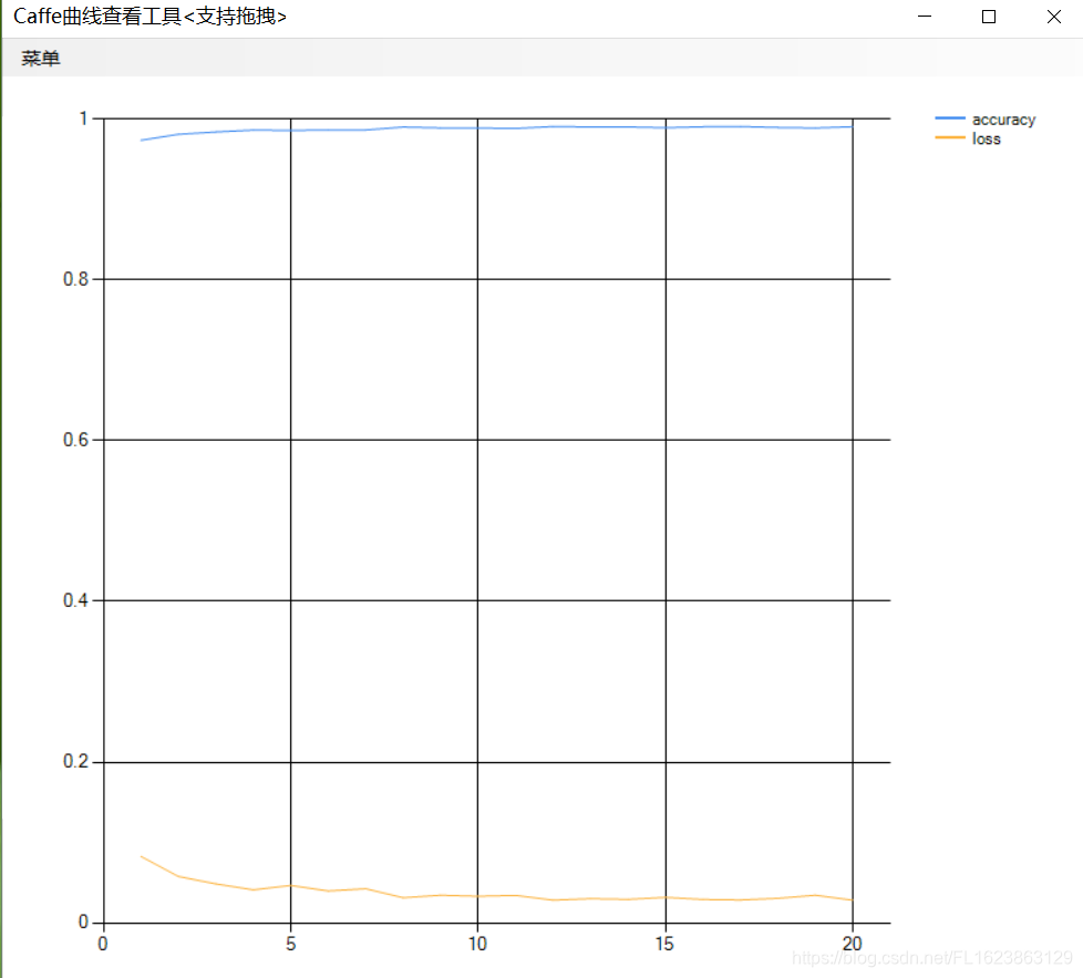 Caffe-Windows下loss和accuracy曲线网上都是python代码有的是python2用起来不是这个错就是那个错,为了解决这个问题,我开发了一个软件你只需拖拽日志到软件即可查看loss和accuracy曲线,由于每个迭代次数不一样,如果以迭代次数作为横坐标可能图像显示挤在一起,所以横坐标我没有设置,不代表任何含义,下面是截图