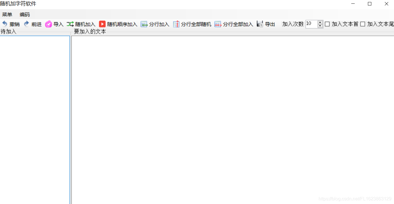 1、随机加入:将待加入文本按次数随机加入到文本中,加入算法采用的是随机取文本长度(含加入的随机文本)加入待加入文本; 2、随机顺序加入:将待加入文本按次数随机加入到文本中,加入算法采用的是文本长度等分区间随机取位置加入,所以不会出现待加入文本重叠或者错叠现象; 3、分行加入:将待加入文本分行到数组,然后从数组随机抽取行文本,采用上述随机顺序加入算法加入数组文本,注意此方法,可能不能加入所有行文本,因为行文本采用的是随机抽取方法,可能有的一直抽不到 4、分行全部加入:将待加入文本分行到数组,然后从数组依次抽取行文本,采用上述随机顺序加入算法加入数组文本,注意此方法,只是位置随机,加入的文本是按照行文本顺序加入,此加入方法要求,次数必须要大于等于分行的文本数 5、分行全部随机:将待加入文本分行到数组,然后从数组随机抽取行文本,采用上述随机顺序加入算法加入数组文本,注意此方法,不但位置随机,加入的文本也是随机加入,此加入方法要求,次数必须要大于等于分行的文本数 6、撤销只保留当前前10步操作数据,注意操作有效性,以防不可撤销操作