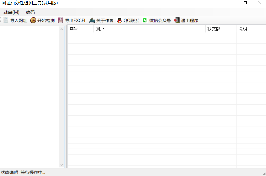 当我们有很多网址,但是不知道里面是不是有些网址已经失效。这种情况下怎么办?一般我们会一个一个打开网址查看是不是有效,这种方法对十几个网址还行,如果1000个怎么办,为了解决这个问题,我们开发一款可以批量检测网址有效的软件,即通过读取状态码,判断网址是不是还可以打开。首先我们打开软件看看截图