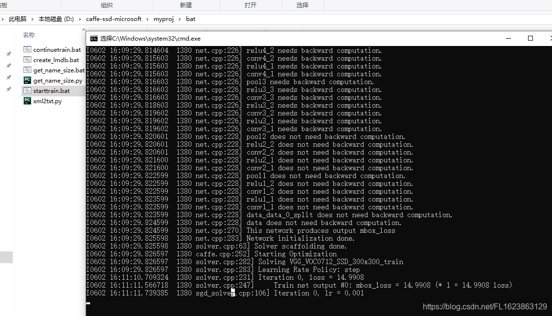 - 删除D:\caffe-ssd-microsoft\myproj/lmdb里面的train_lmdb文件夹和test_lmdb文件夹,不然生成lmdb会提示错误