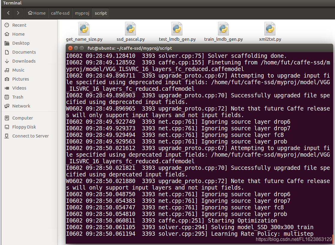 - 删除/home/fut/caffe-ssd/myproj/lmdb里面的train_lmdb文件夹和test_lmdb文件夹,不然生成lmdb会提示错误