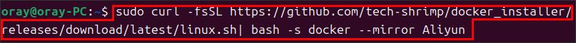sudo curl -fsSL https://github.com/tech-shrimp/docker_installer/releases/download/latest/linux.sh| bash -s docker --mirror Aliyun