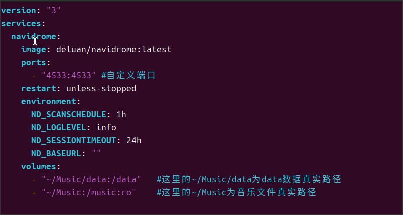 - "~/Music:/music:ro" #这里的~/Music为音乐文件真实路径
