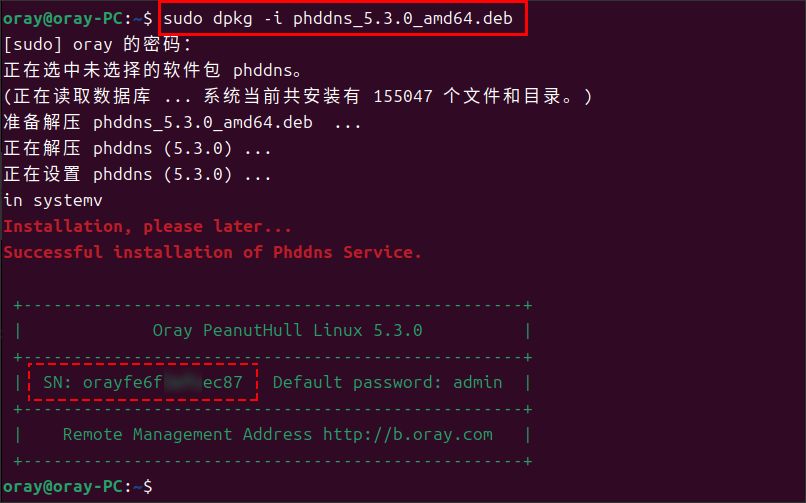 sudo dpkg -i phddns_5.3.0_amd64.deb