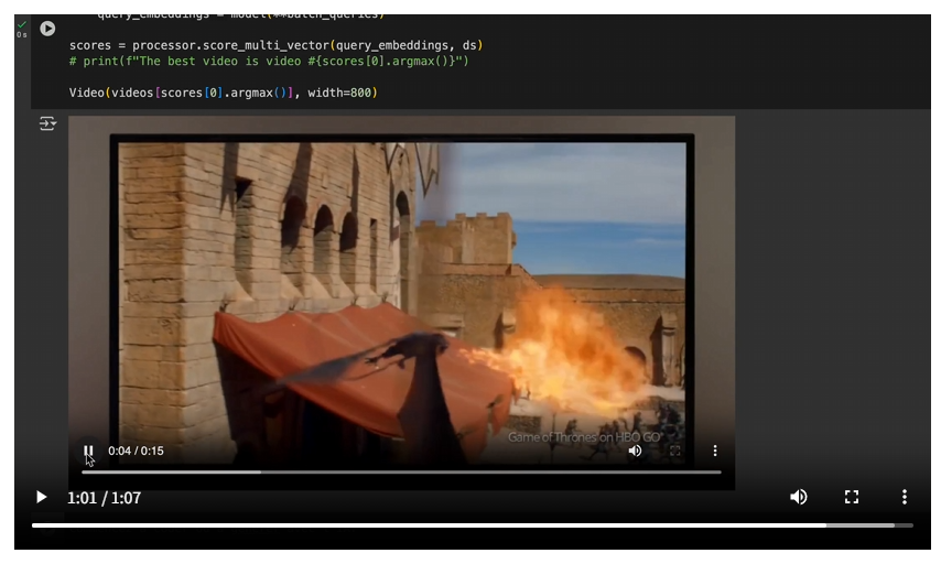 ColQwen-Omni 也适用于视频。但请注意,视频处理对内存开销很大,因此最适合处理短视频片段。