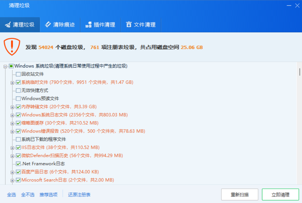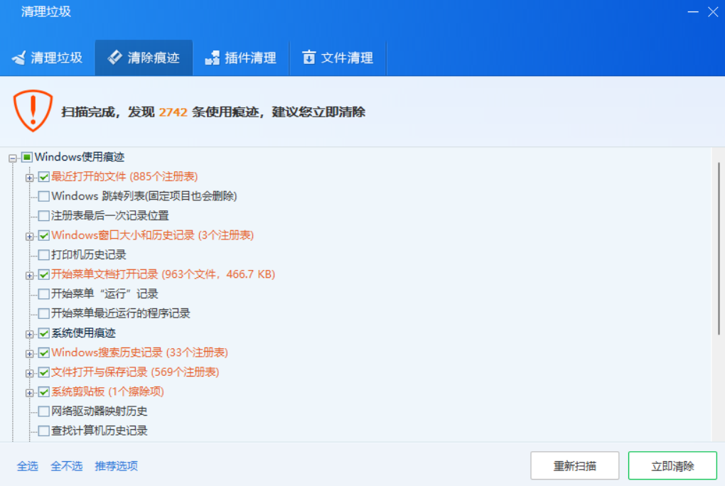 也扫描出不少使用痕迹,顺便清除掉,还我本本一个无痕的环境吧。