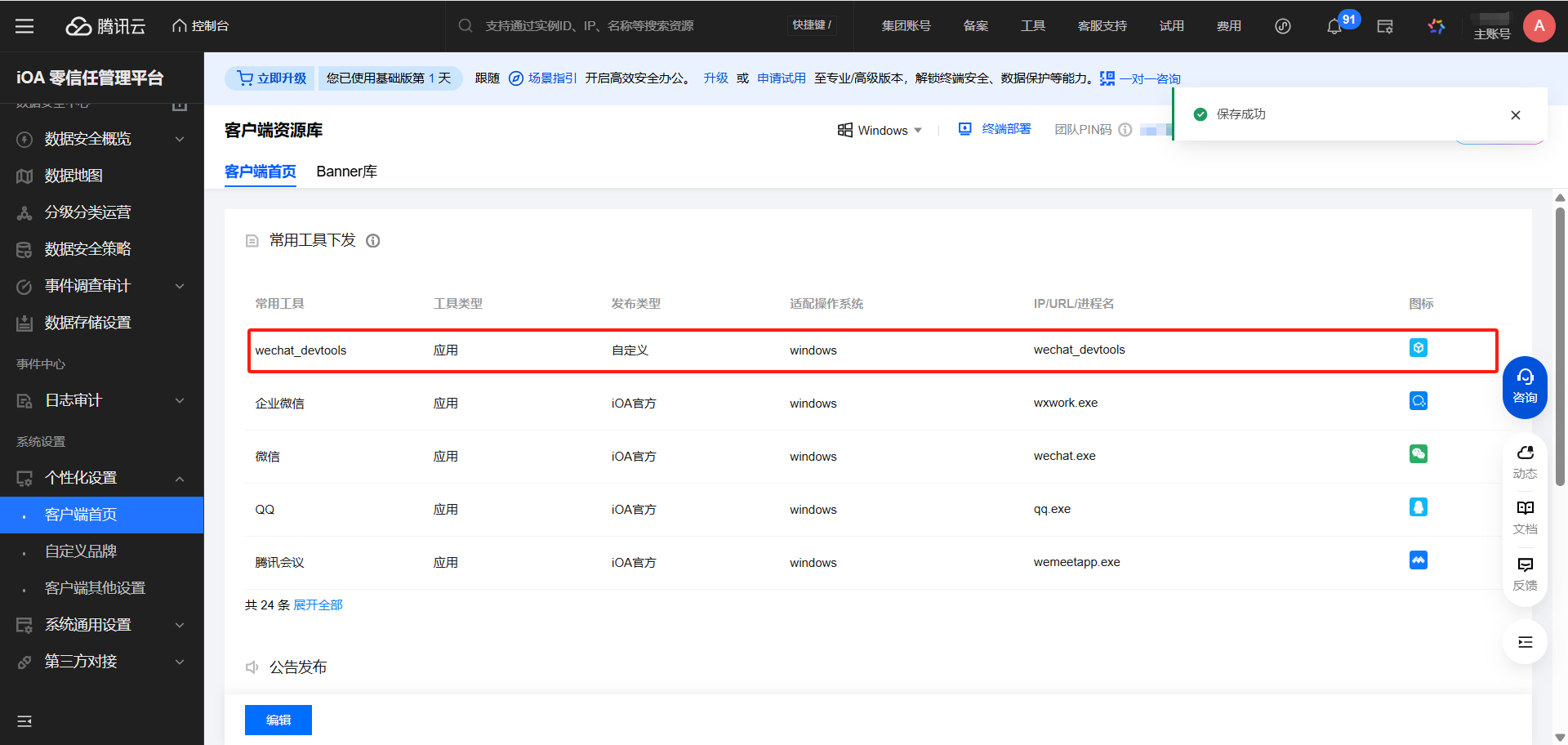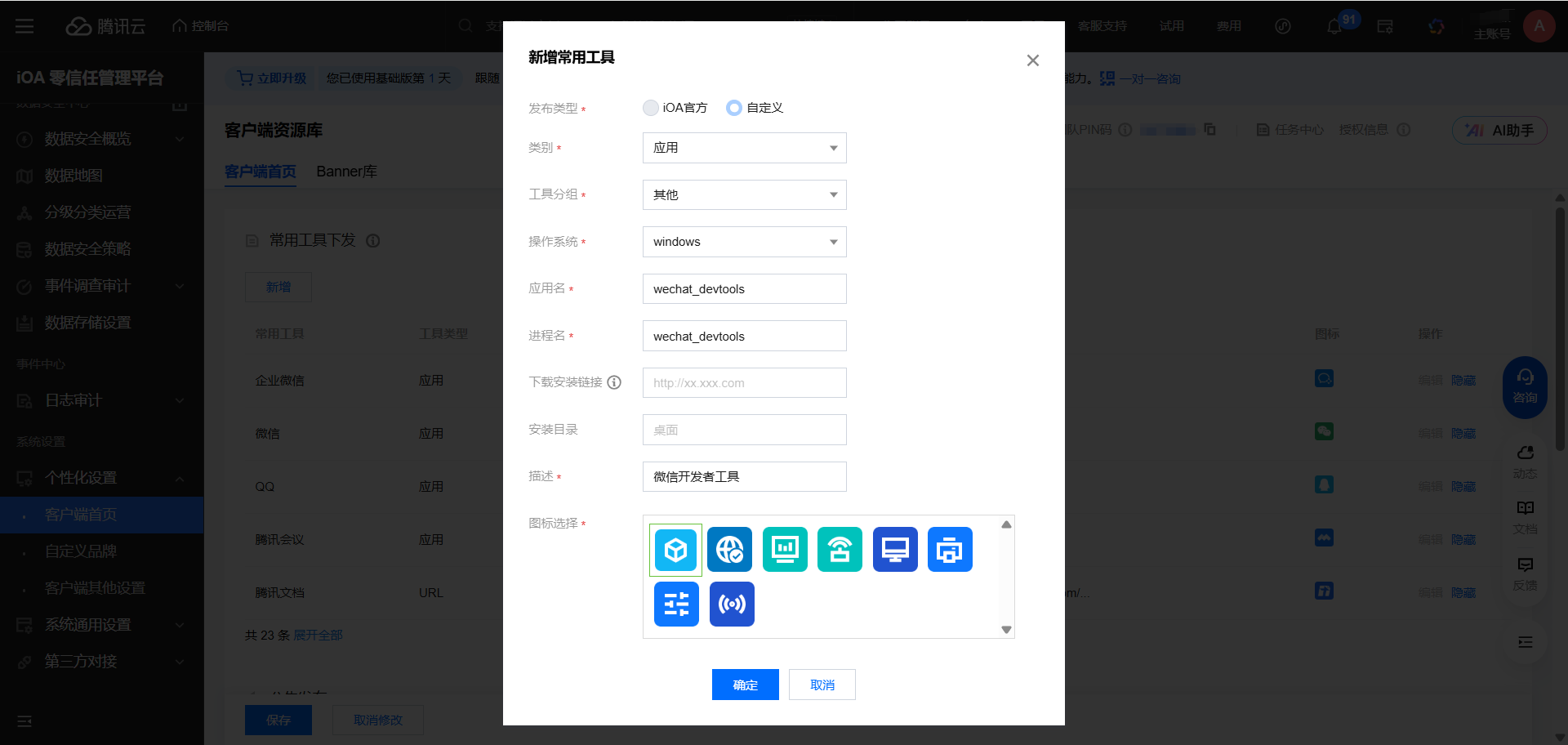 还有这个个性化设置-客户端首页,可以自定义新增比较常用的工具,点击编辑,就可以新增了,也可以控制显示或者隐藏。