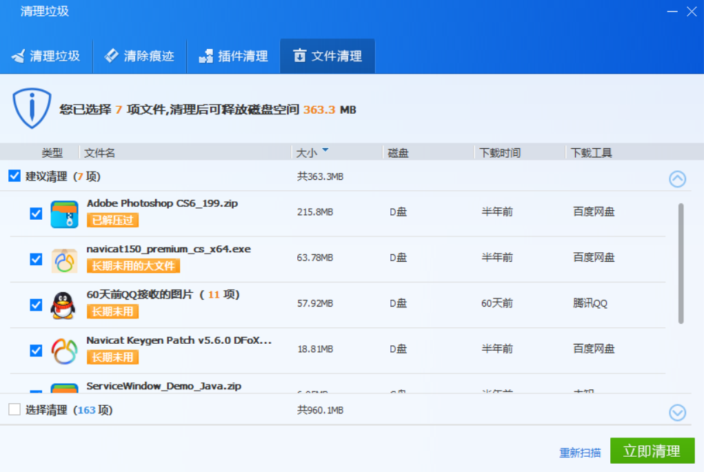 这个扫描结果,7项文件建议清理,占用空间还不算很大,算了,先不清理。