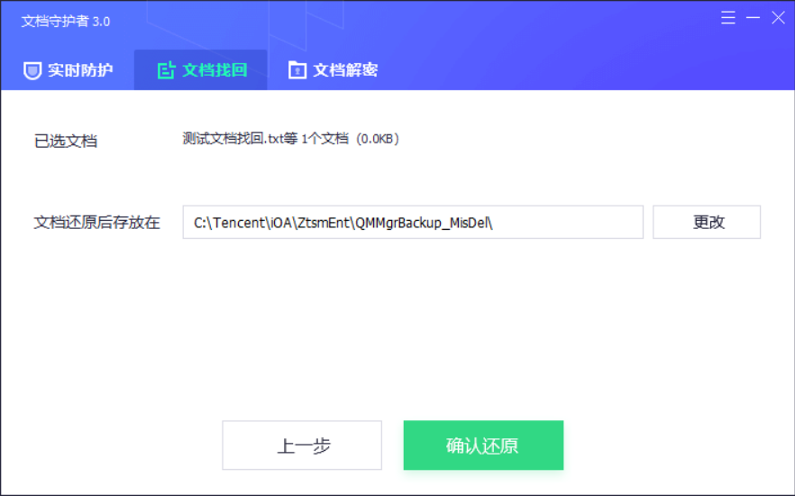 选择文档还原后存放位置,点击确认还原。