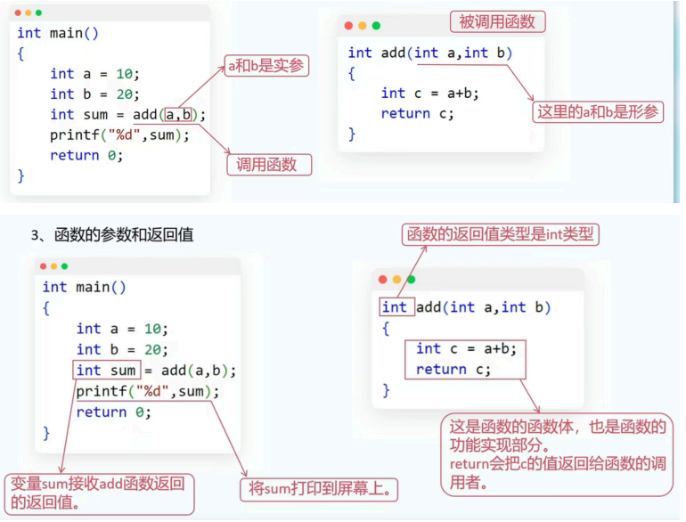 函数声明:在使用函数前,需要声明他的返回类型和参数列表