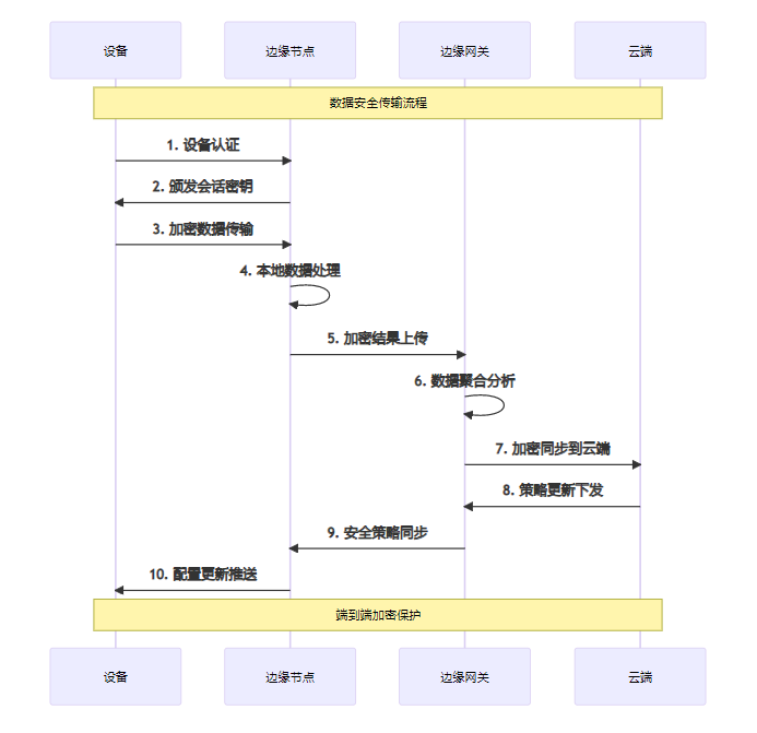 在边缘计算环境中,数据在多个节点间流转,需要确保传输过程的安全性: