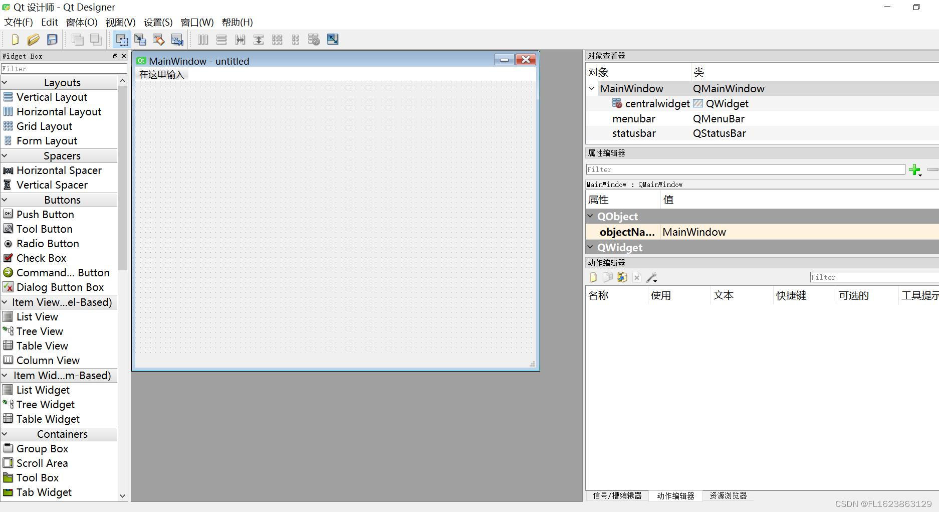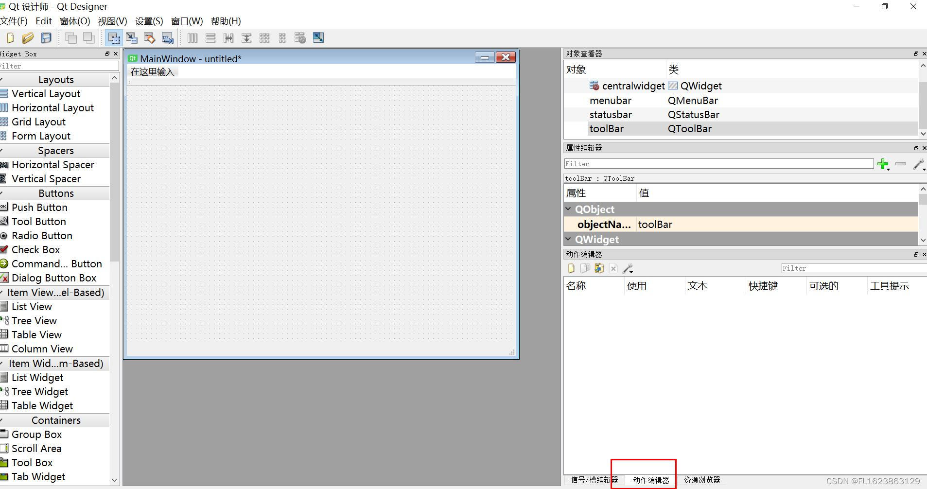 之后工具栏就会出来,但是工具栏上面什么也没有,右键单击工具栏也没有可以添加按钮选项,原来添加按钮选项需要再动作编辑器里面添加, 动作编辑器就在右下区域