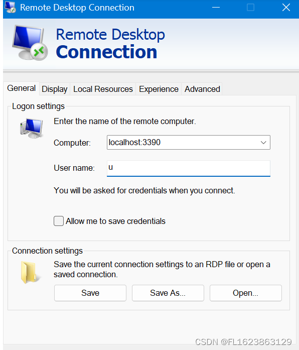 输入ip地址:3390或者localhost:3390,用户名输入你的用户名(比如:我的是u)