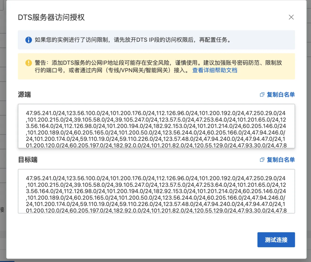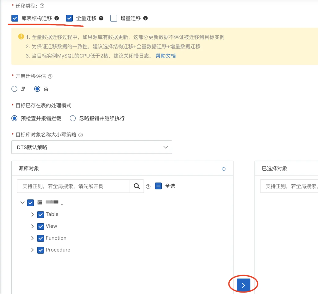 FLUSH PRIVILEGES;数据结构迁移和全量同步可以使用开源的工具比如DataX,或者使用阿里云免费的数据迁移工具DTS,可参考《mysql数据库迁移方式》,这里以阿里云DTS简单唠叨两句: