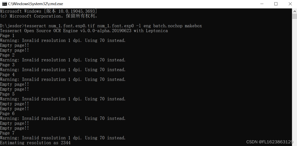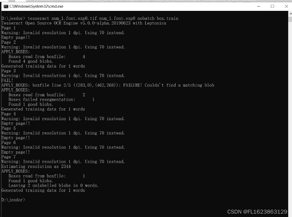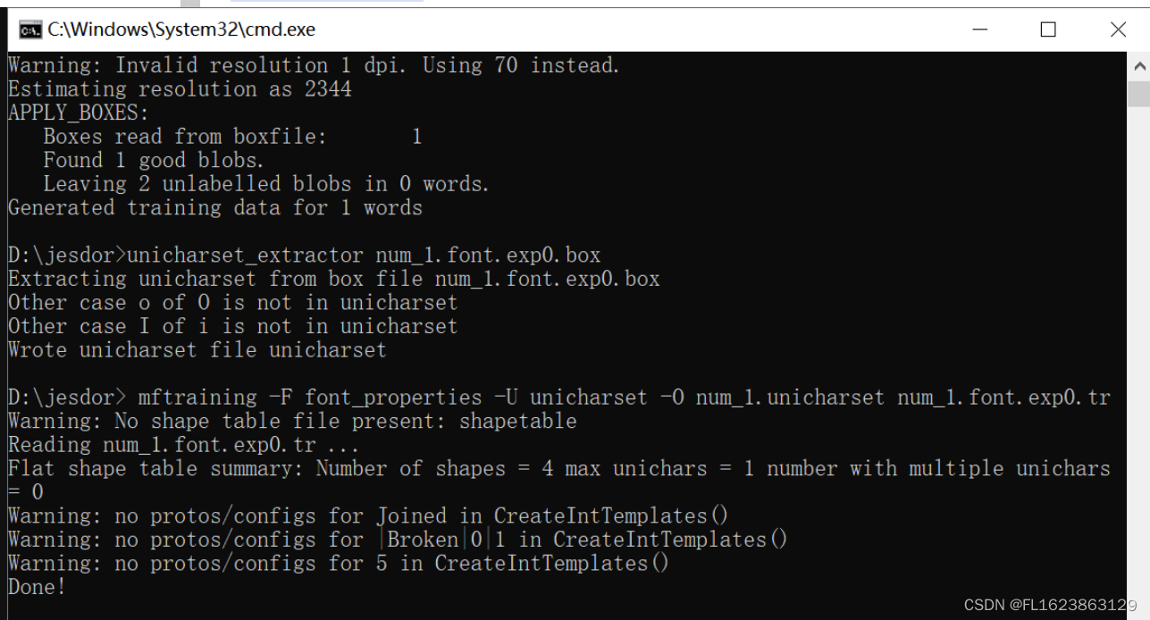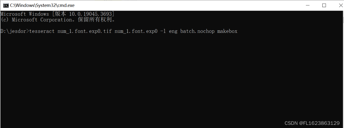 在命令行窗口中输入命令: tesseract num_1.font.exp0.tif num_1.font.exp0 nobatch box.train