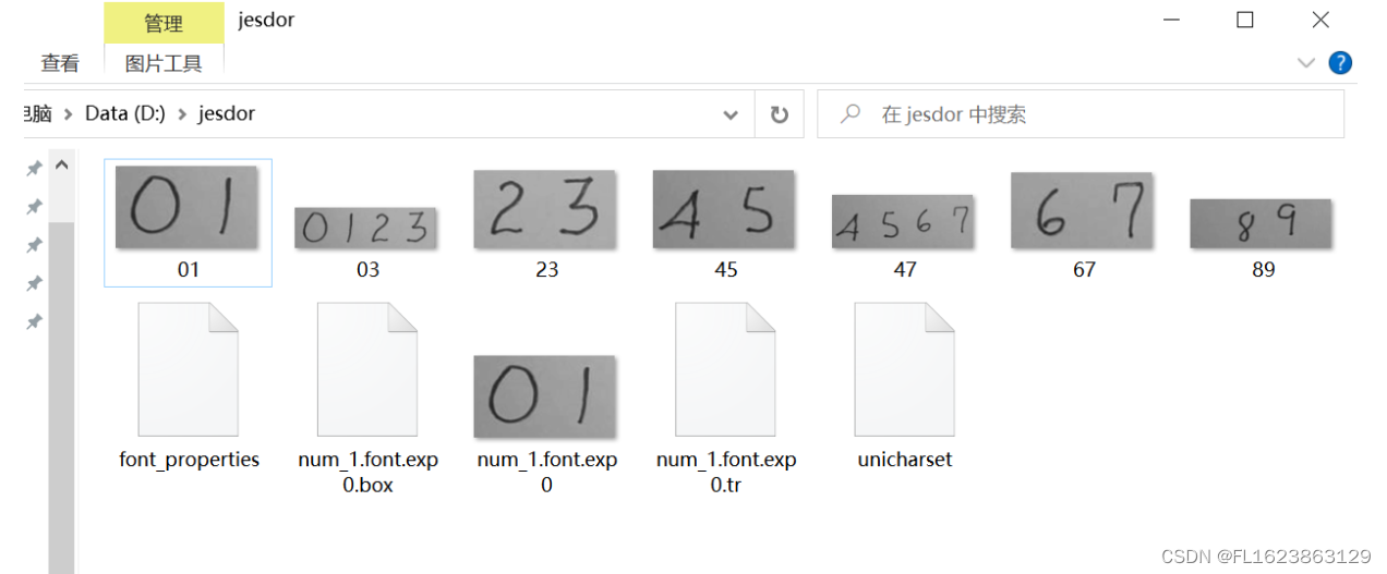 将上面的图片放到一个D:\jesdor目录下(自己可以命名)新建的文件夹下,在D:\jesdor目录下有一个jTessBoxEditor.jar的java文件,这个文件需要用java虚拟机打开,电脑上配置了java环境就可以直接打开。