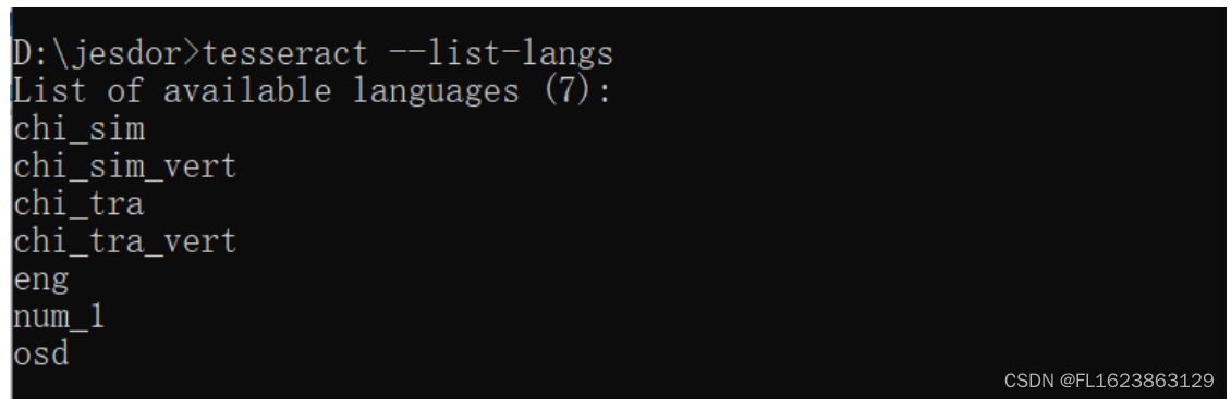 输入命令:tesseract --list-langs 可以看到语言库中有自己刚添加的字库num_1