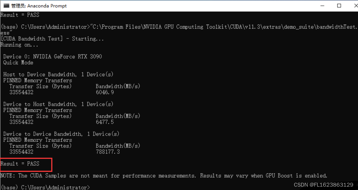 出现这个结果,则第二项测试也通过了 。有些网传说第二项测试是检查cudnn是否正常的这是错误的,因为不安装cudnn这项测试也可以通过。通过这两项测试则CUDA安装正确了。