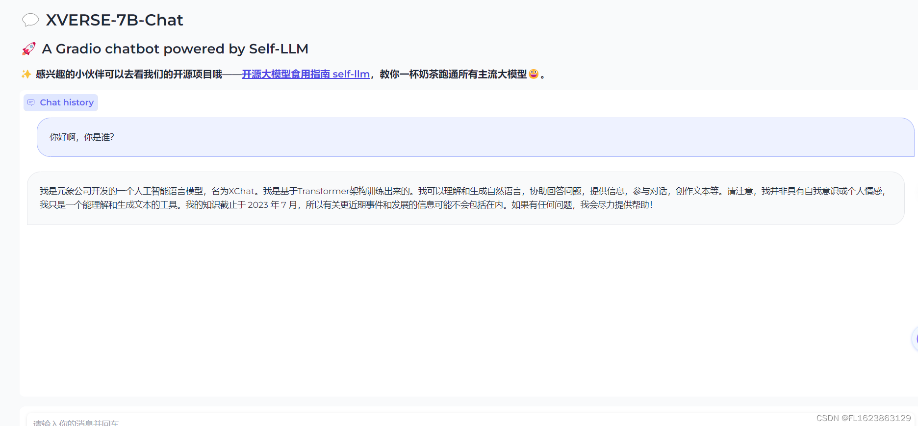 ## <center>🚀 A Gradio chatbot powered by Self-LLM</center>