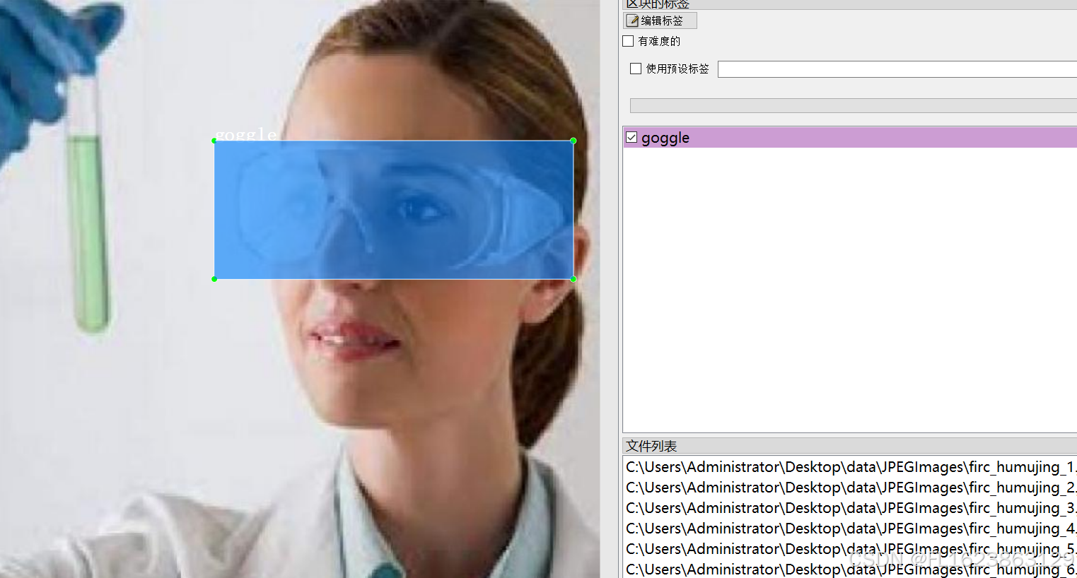 数据集格式:Pascal VOC格式+YOLO格式(不包含分割路径的txt文件,仅仅包含jpg图片以及对应的VOC格式xml文件和yolo格式txt文件) 图片数量(jpg文件个数):888 标注数量(xml文件个数):888 标注数量(txt文件个数):888 标注类别数:1 标注类别名称:["goggle"] 每个类别标注的框数: goggle 框数 = 1139 总框数:1139 使用标注工具:labelImg 标注规则:对类别进行画矩形框 重要说明:数据集中部分图片有增强 特别声明:本数据集不对训练的模型或者权重文件精度作任何保证,数据集只提供准确且合理标注