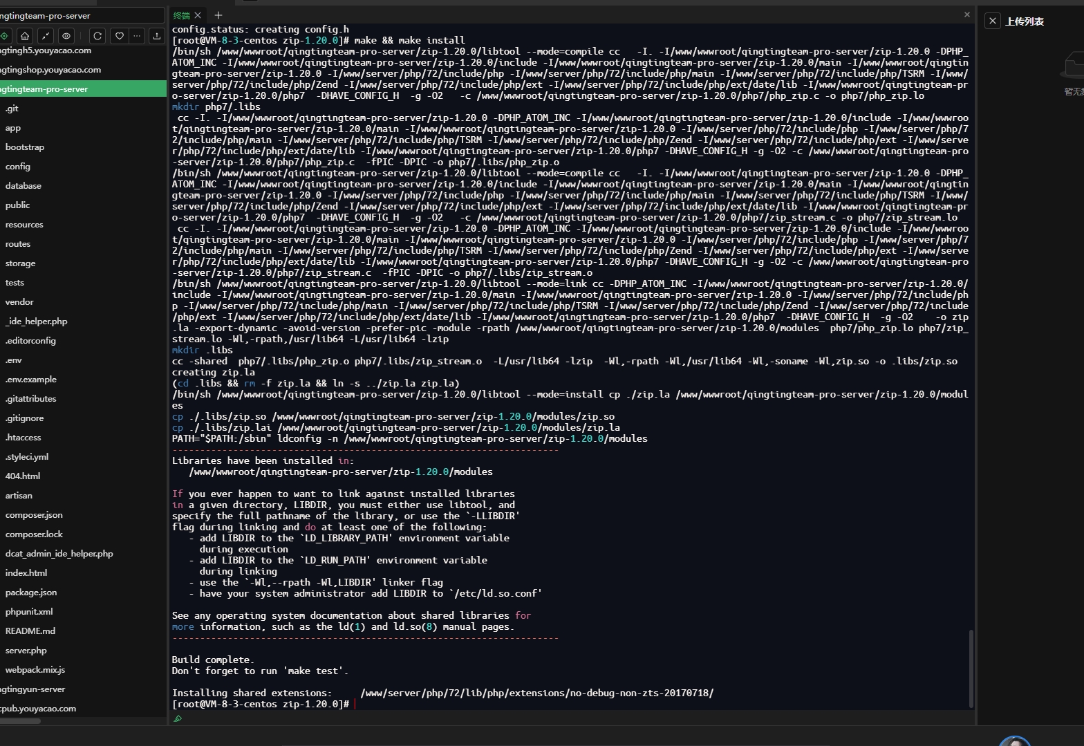 zip.so 和 fileinfo.so 扩展文件缺失或版本不匹配php -v/www/server/php/72/)# 安装 zip 扩展