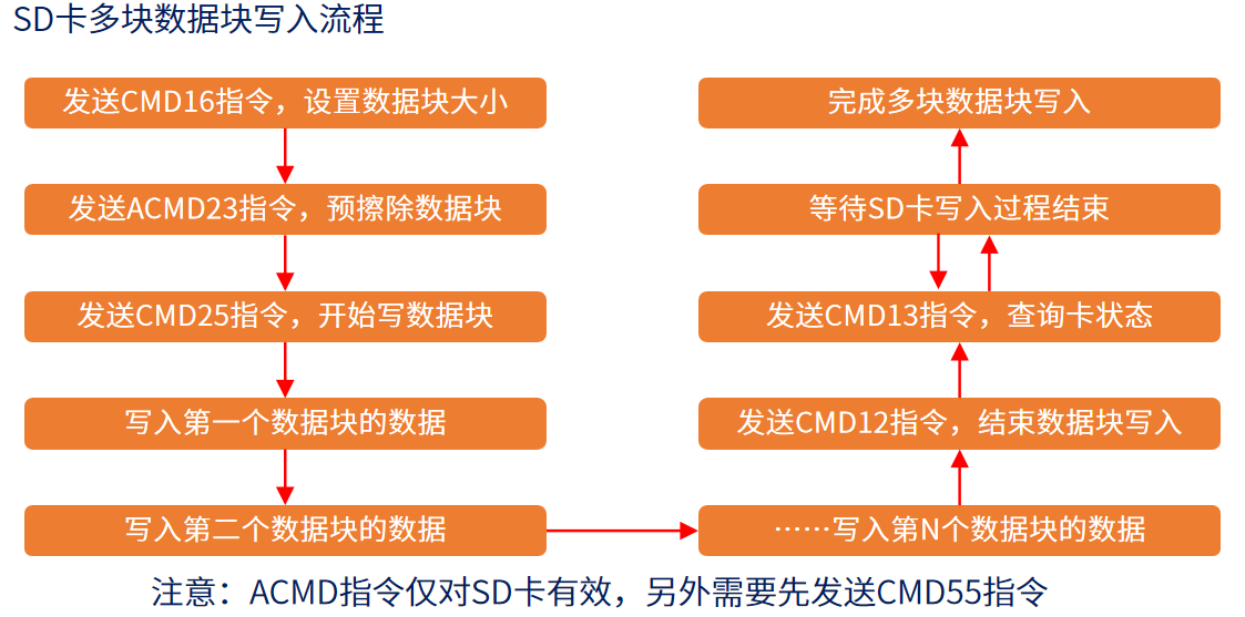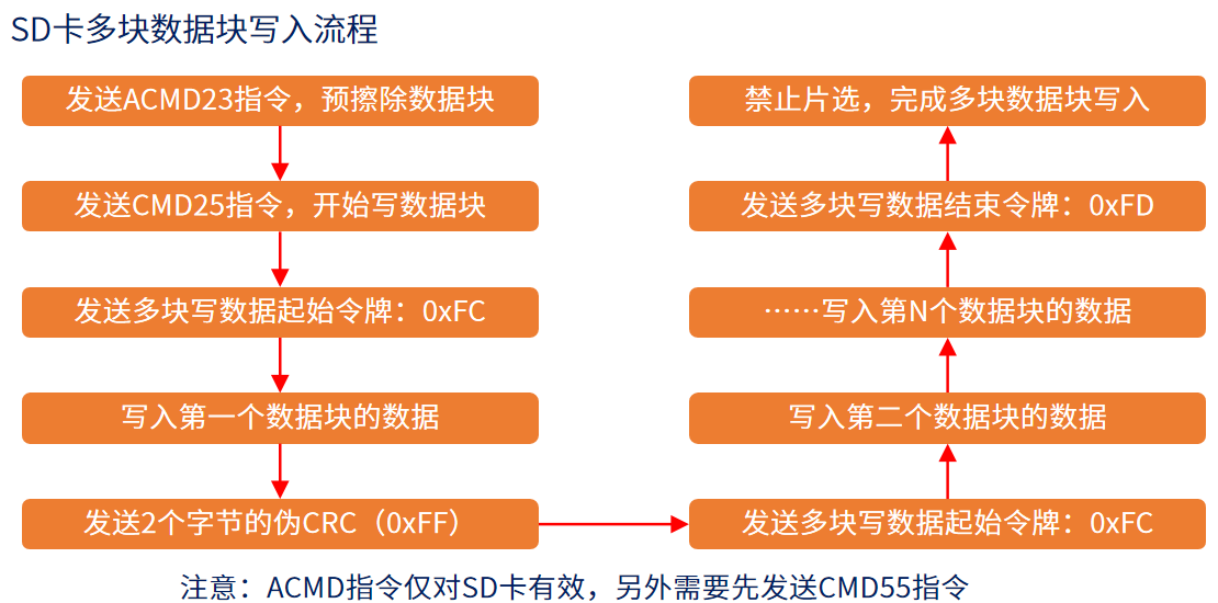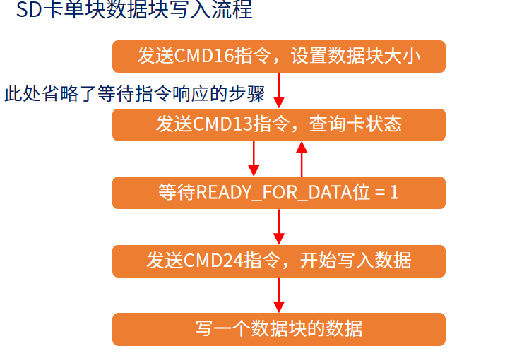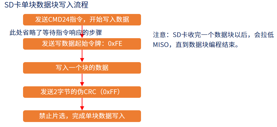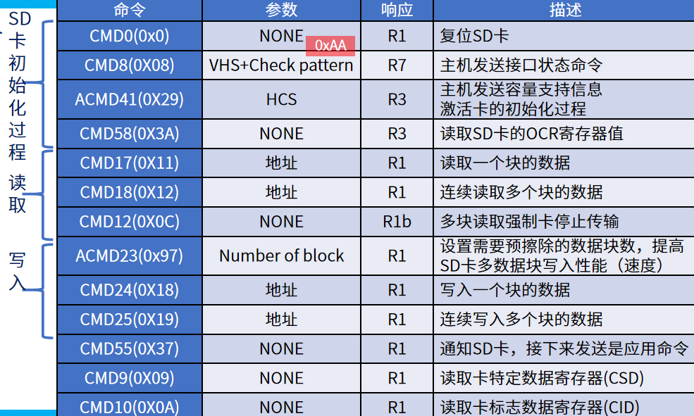 SD卡的命令格式由6个字节组成,发送数据时高位在前,SD卡的写入命令格式如下: