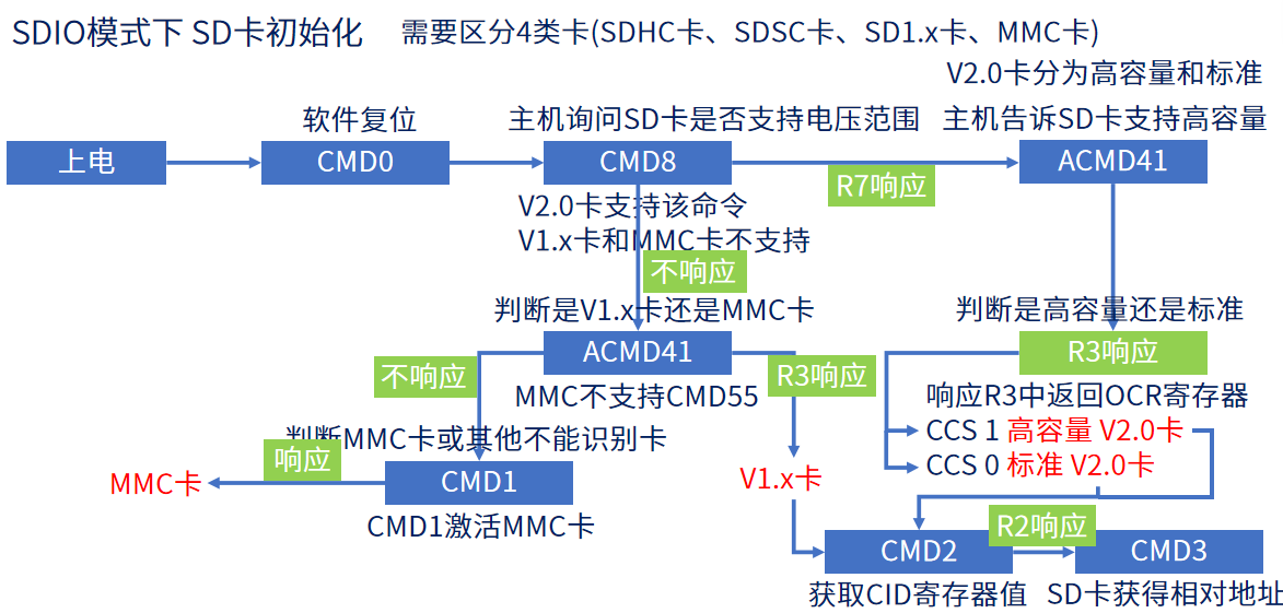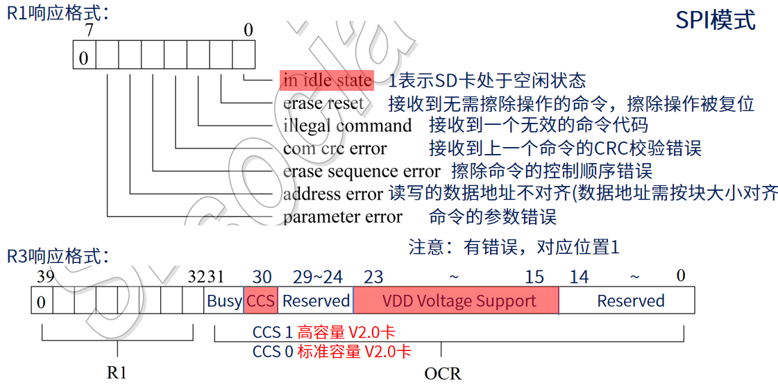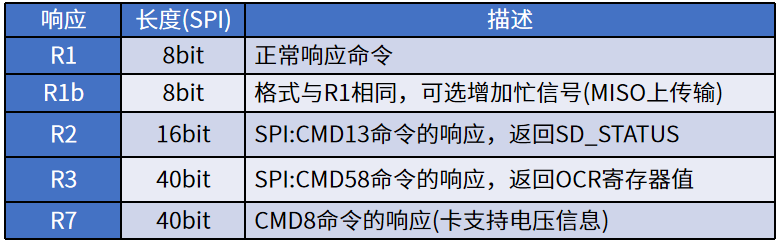SD卡响应因使用接口不同,格式也不同。响应具体有R1、R1b、R2、R3、R7。
