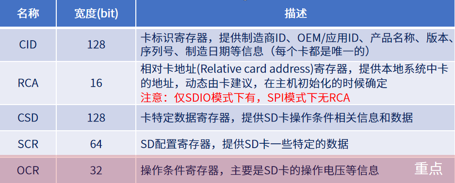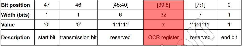 R3响应:OCR寄存器的值作为ACMD41的响应
