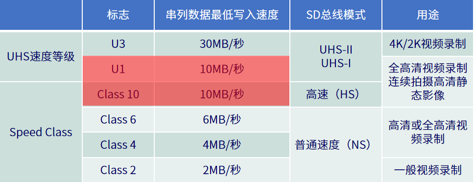 4.SD卡速度等级分为:Speed Class、UHS Speed Class和Video Speed Class